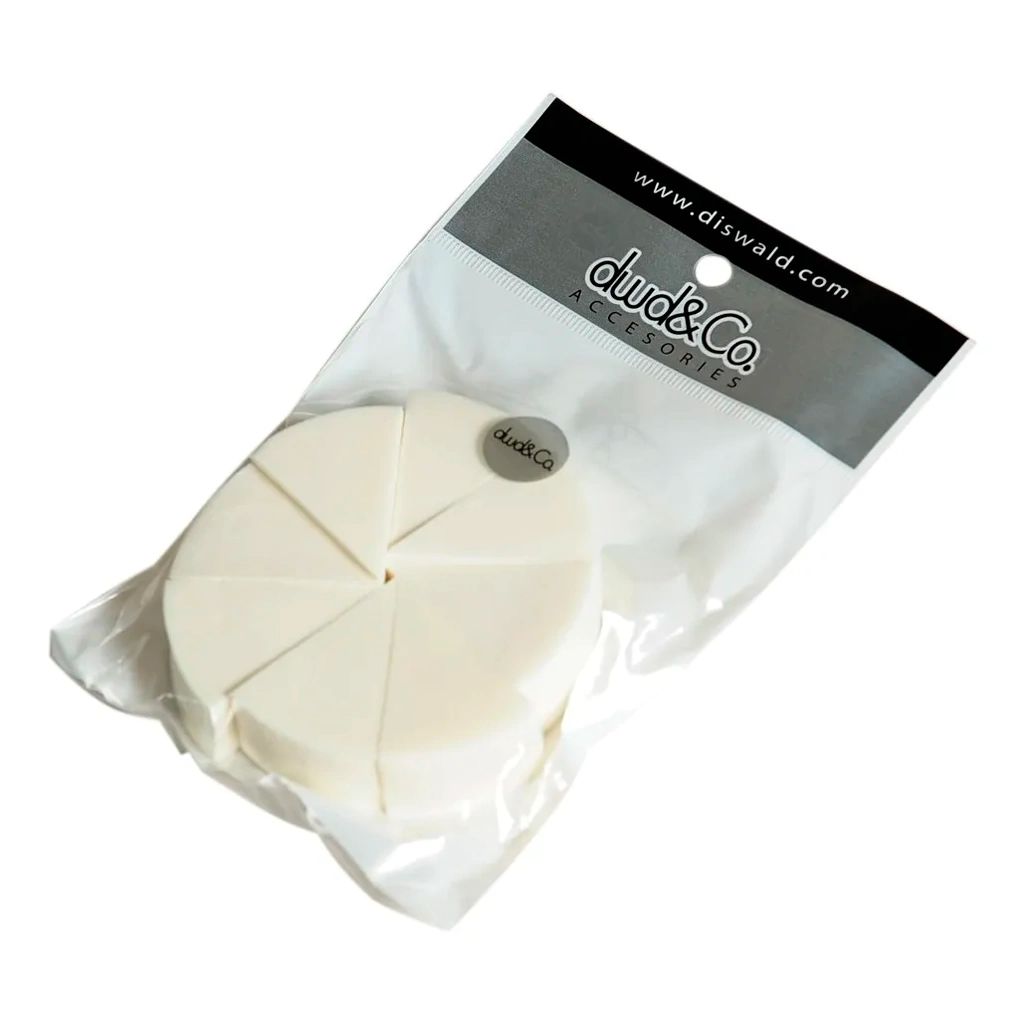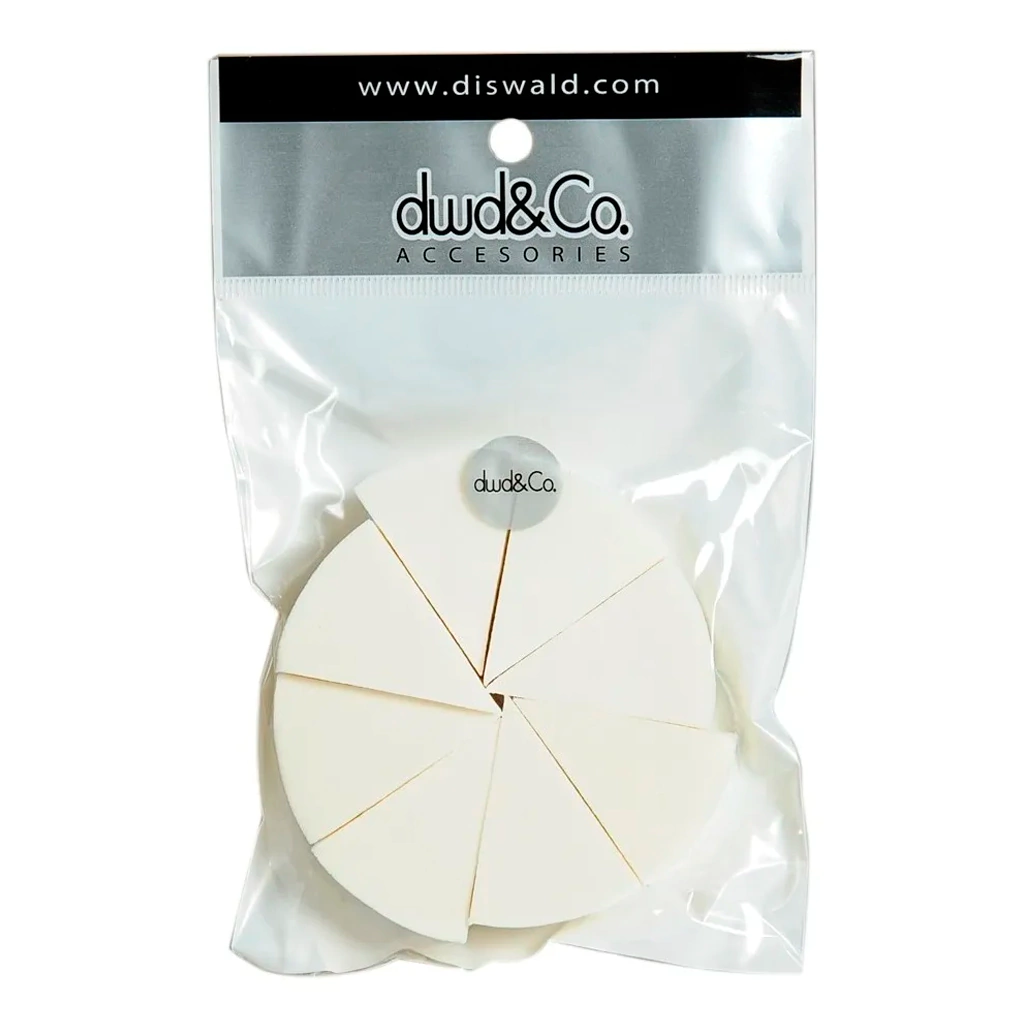 Diswald & Co kit x 8 esponjas de látex para aplicación de maquillajes líquidos o en crema. La textura de las esponjas permite distribuir el maquillaje sin dejar marcas logrando un efecto aterciopelado en la piel.
