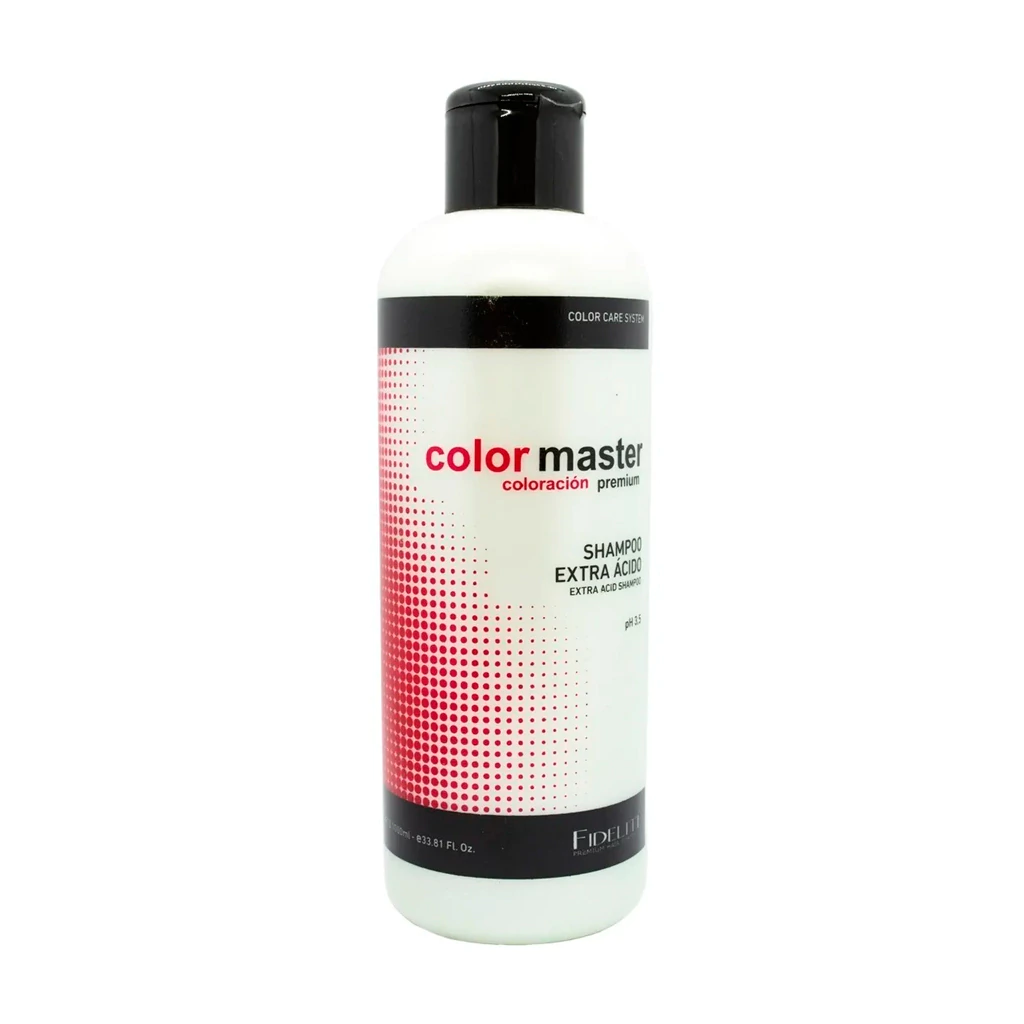 Shampoo Extra Ácido Para Cabellos Teñidos Fidelité Color Master Shampoo brinda limpieza profunda para todo tipo de cabellos, especialmente cabellos sometidos a procesos de coloración. Neutraliza las cargas negativas que aportan los productos químicos, responsables de la estática, la textura áspera y la falta de brillo. Devuelve el equilibrio a la cutícula y ayuda a mantener el color a través de los lavados.